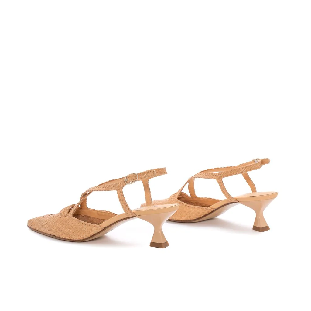 Zapato de tacón Carol tipo salón, confeccionado en piel trenzada a mano en color marfil. Acabado en punta. Cierre mediante hebilla en el tobillo. Altu ra tacón 4,5 cm. PONS QUINTANA