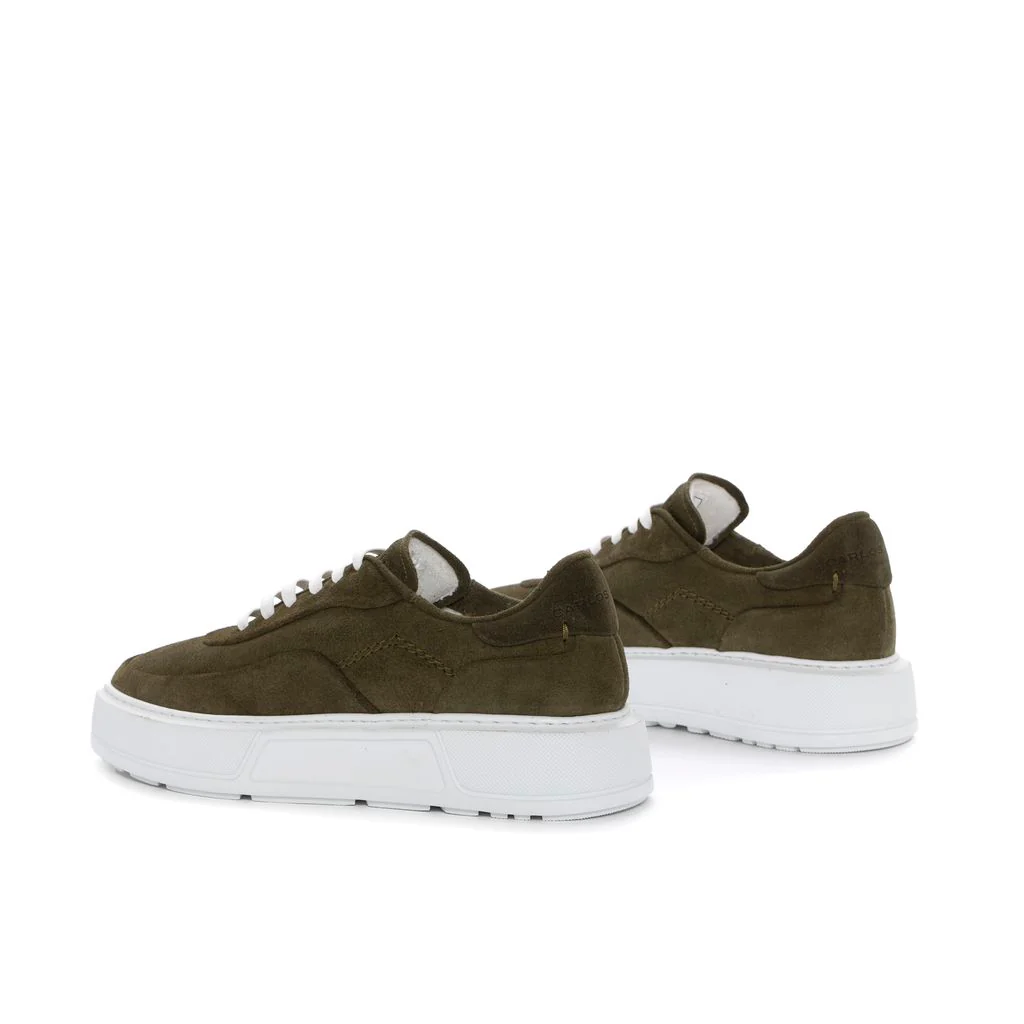 Sneaker Malaya confeccionada en piel velour oliva.Cierre mediante cordones.Acabado en punta redonda.Plataforma de 4 cm a contraste de color blanco. Una sneaker perfecta para tus outfit diarios. CARLOS PONS BRAND