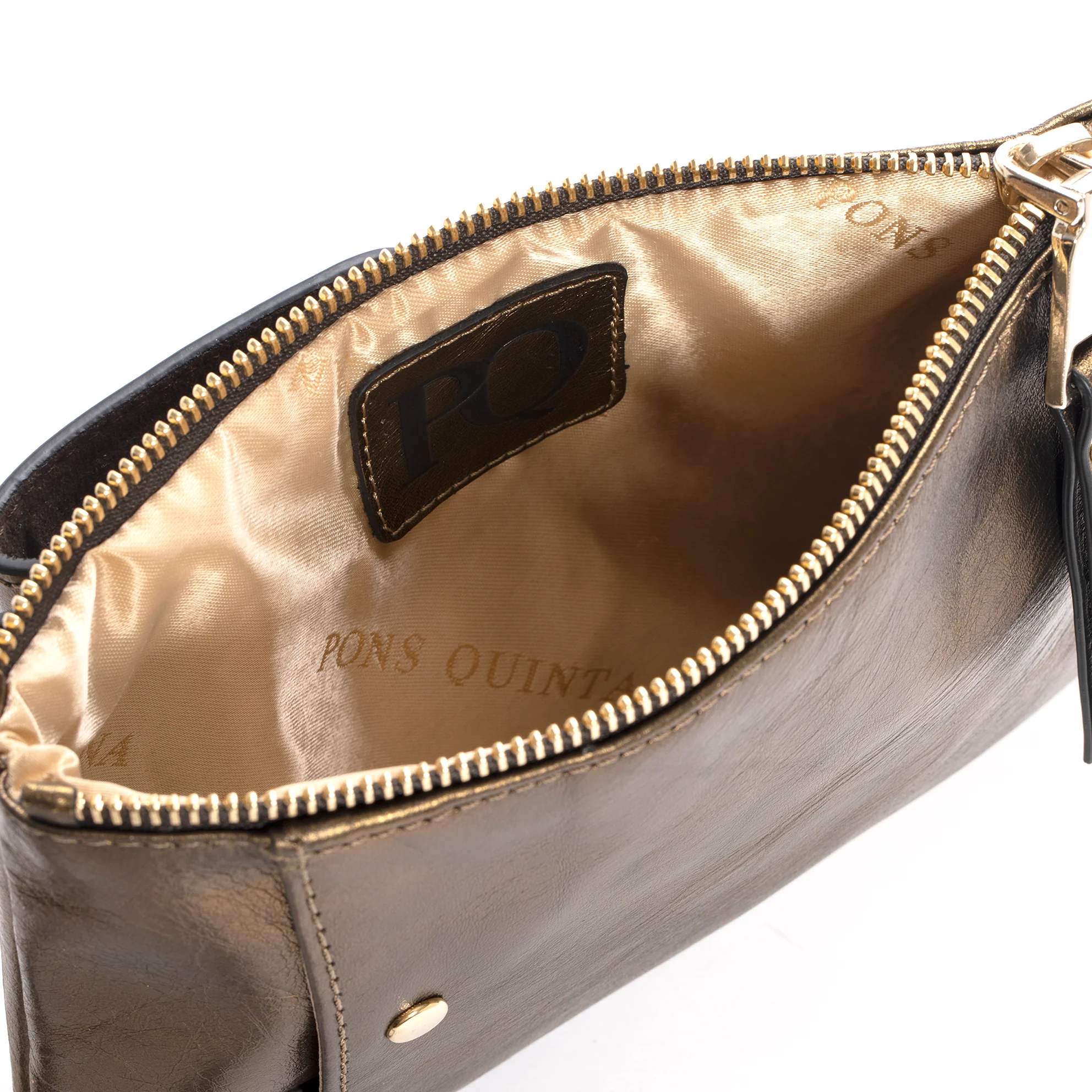 Bandolera confeccionada en piel napetta color oro. Forro textil. Bolsillo exterior en la parte frontal. Cierre mediante cremallera. Asa de piel. Medid as 125x205 cm. PONS QUINTANA