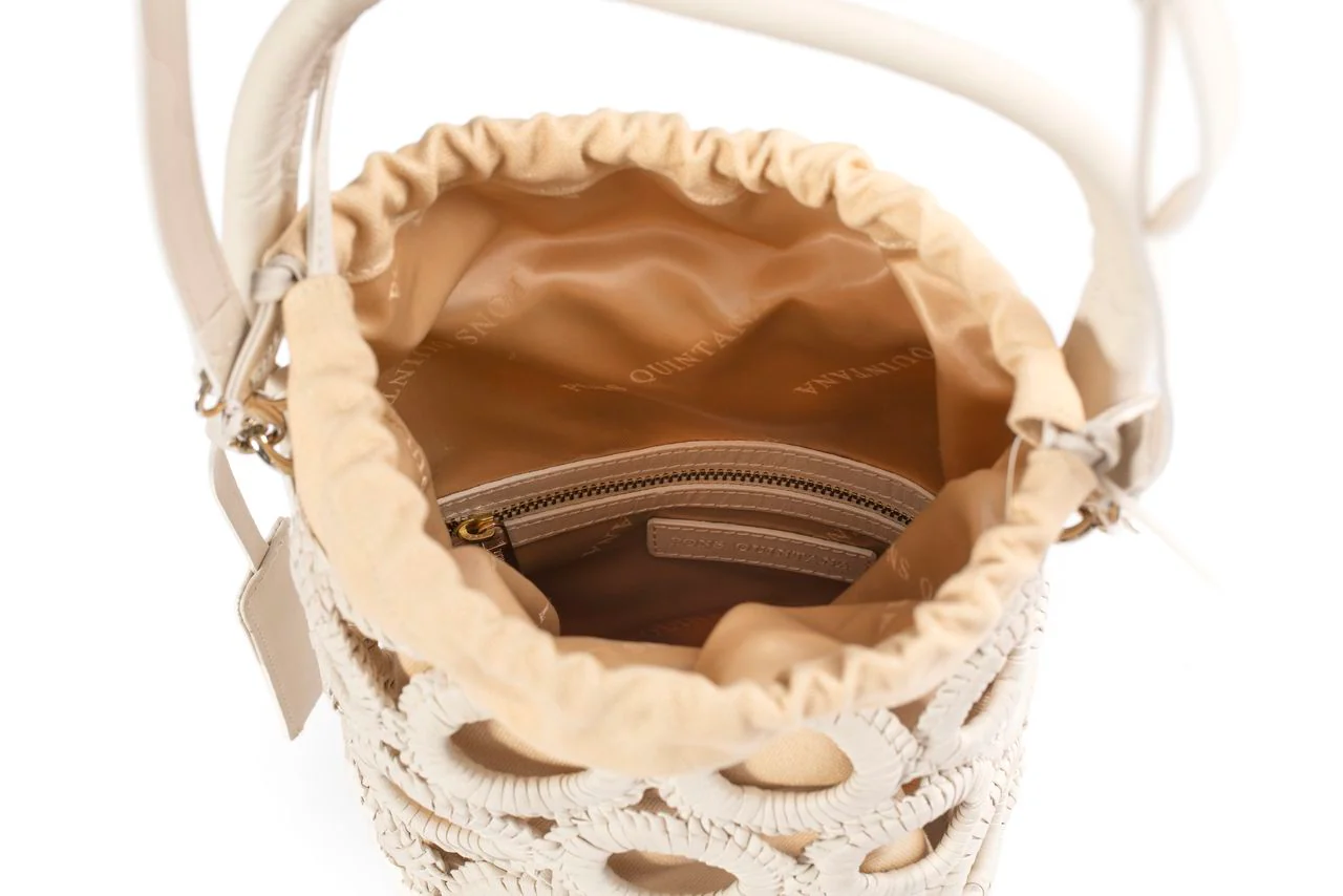 Descubre la Bandolera V215 tipo cesta en piel wet trenzada a mano, una pieza única para mujeres sofisticadas que buscan un toque de elegancia y estilo boho chic. Su diseño cilíndrico, elaborado con círculos trenzados, resalta la artesanía y la autenticidad de un accesorio premium. El suave saco interior a tono y el asa ajustable y extraíble aportan comodidad y versatilidad, ideal para llevarla del día a la noche con total estilo. Déjate cautivar por el color salinas, perfecto para complementar cualquier look con un aire natural y exclusivo.